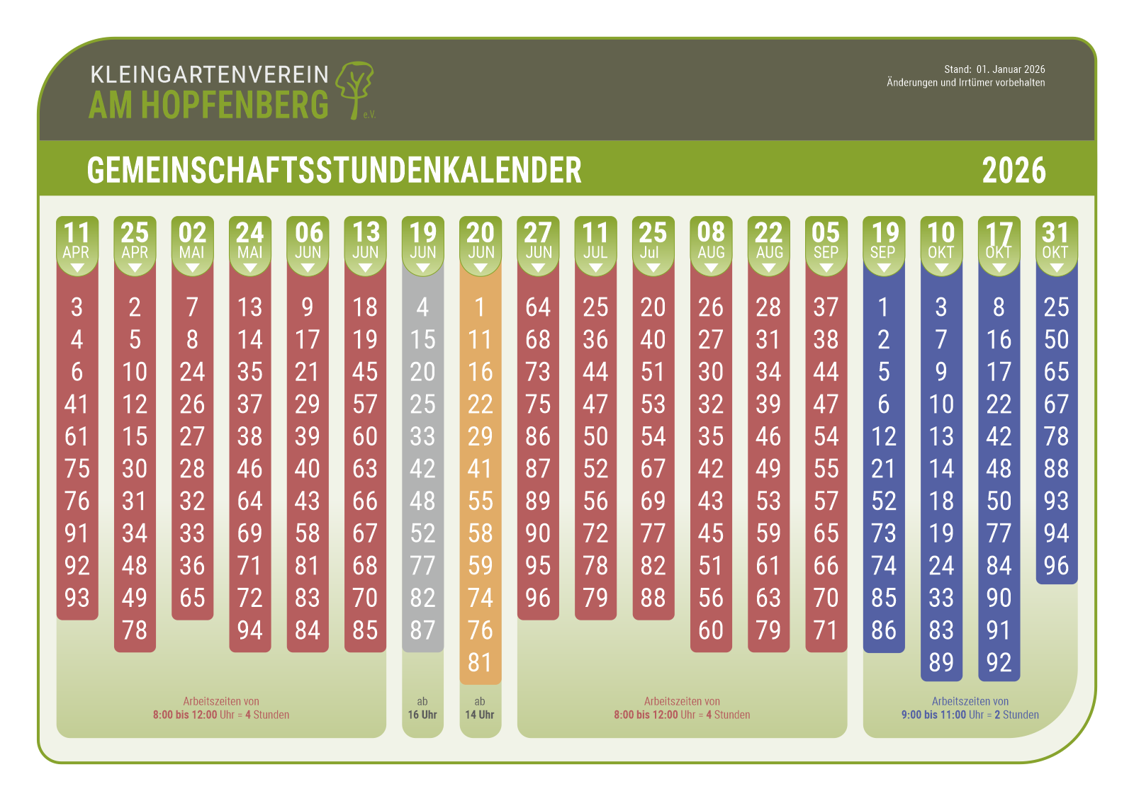 Hier findest du den Kalender zu den Gemeinschaftsstunden für das Kalenderjahr 2026.
