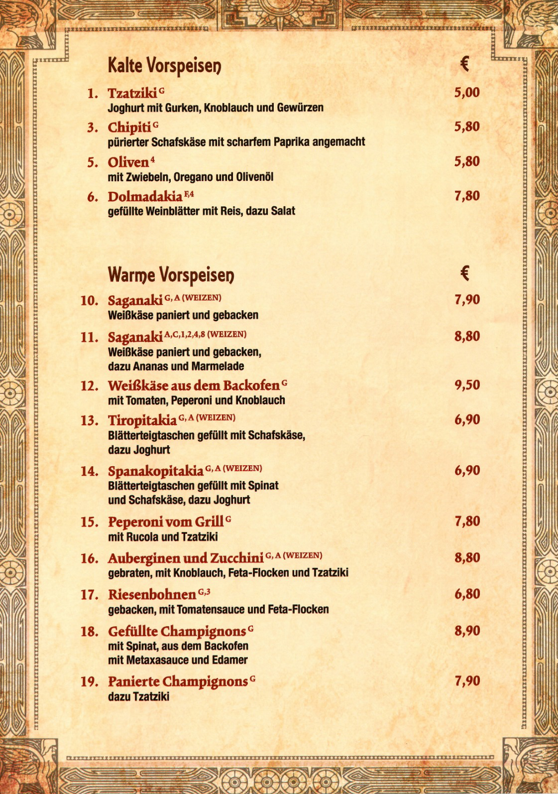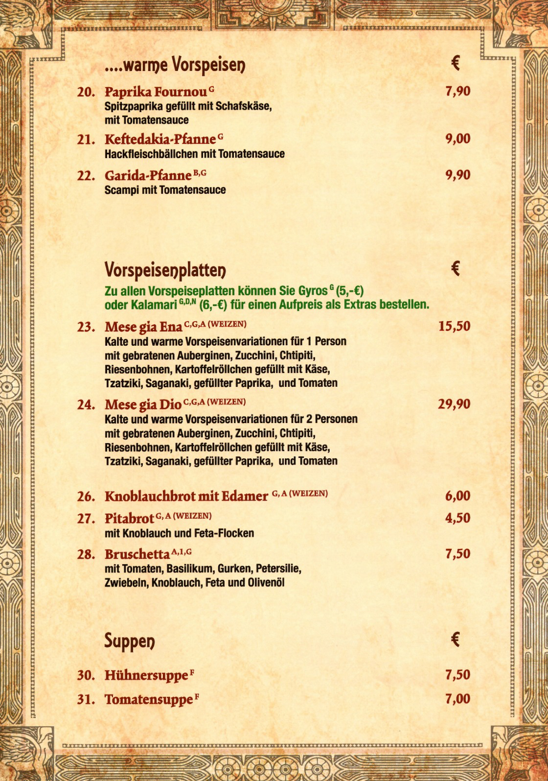Speisekarte